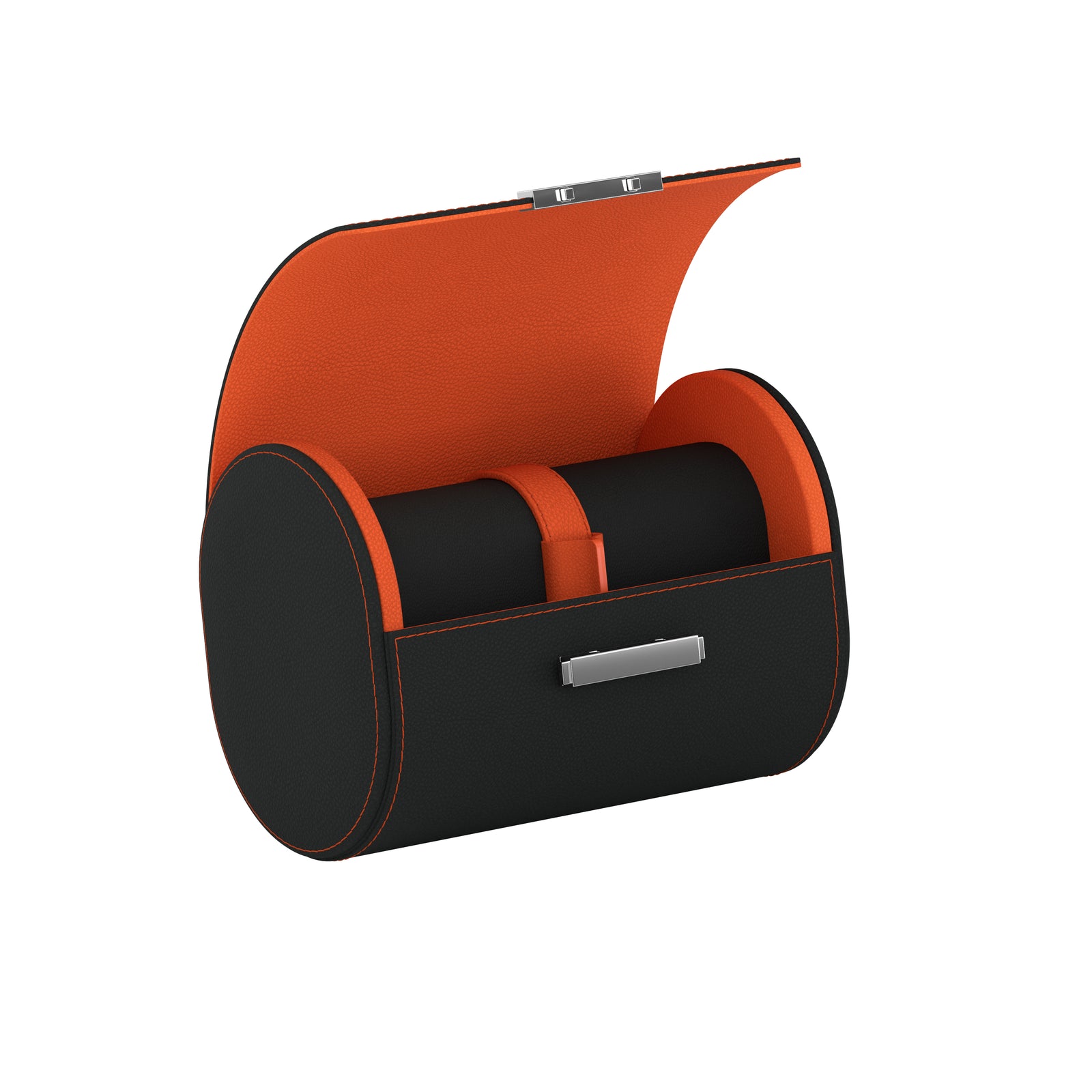 Uhrenkoffer aus Leder in Schiefergrau / Orange