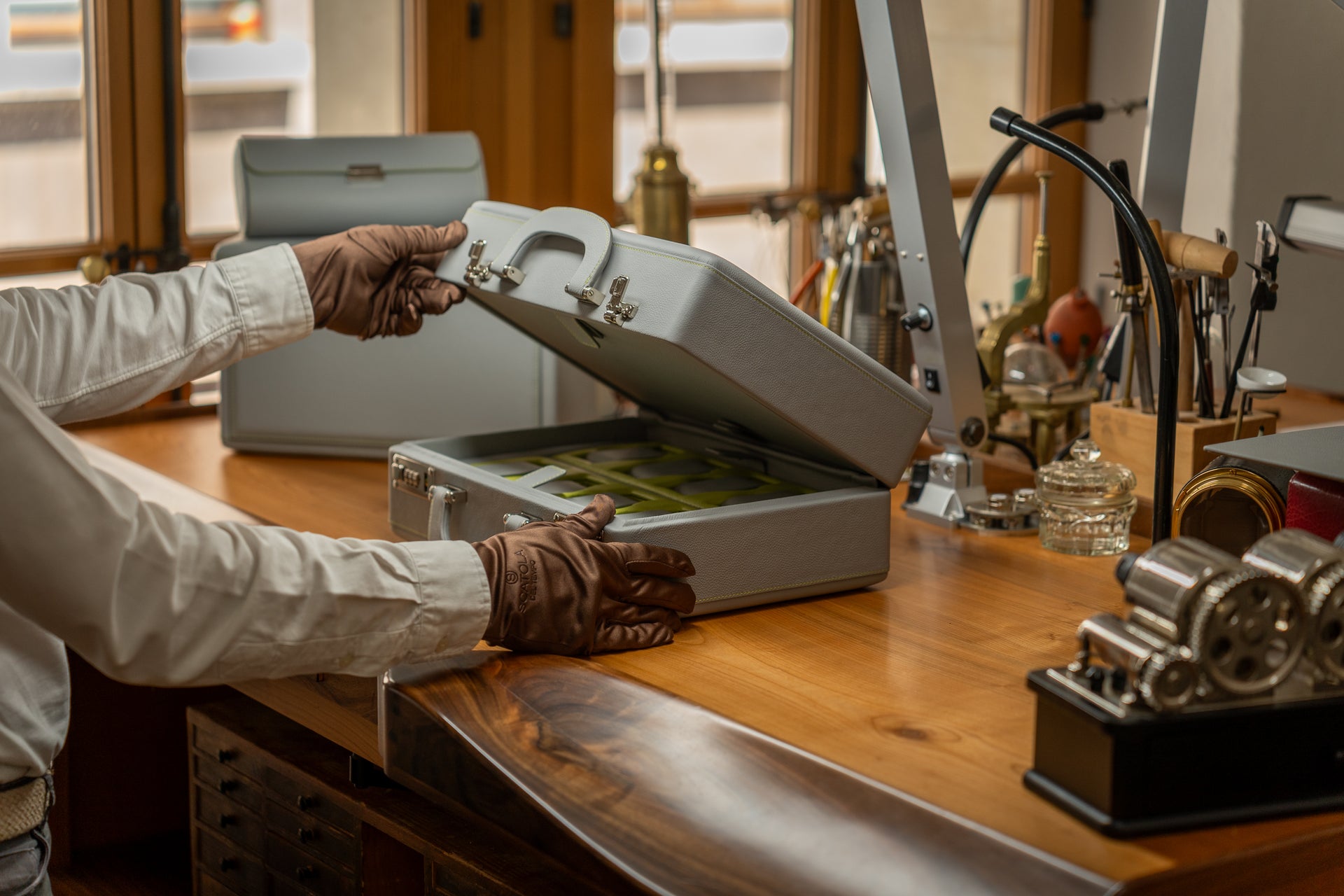 L'ensemble des cuirs que nous utilisons résulte d'un tannage végétal permettant ainsi de réduire notre impact environnemental sans compromettre la durabilité de nos pièces. Fidèle à notre engagement environnemental, le cuir qui habille l'ensemble des remontoirs et boîtes à montres Scatola del Tempo est issu d’un tannage végétal : un procédé durable spécifiquement choisi pour réduire notre empreinte écologique. Chaque détail est pensé pour préserver la beauté naturelle et intemporelle de notre cuir signature. À la fois résistant et doux au toucher, ce dernier traverse ainsi le temps sans jamais perdre son élégance.