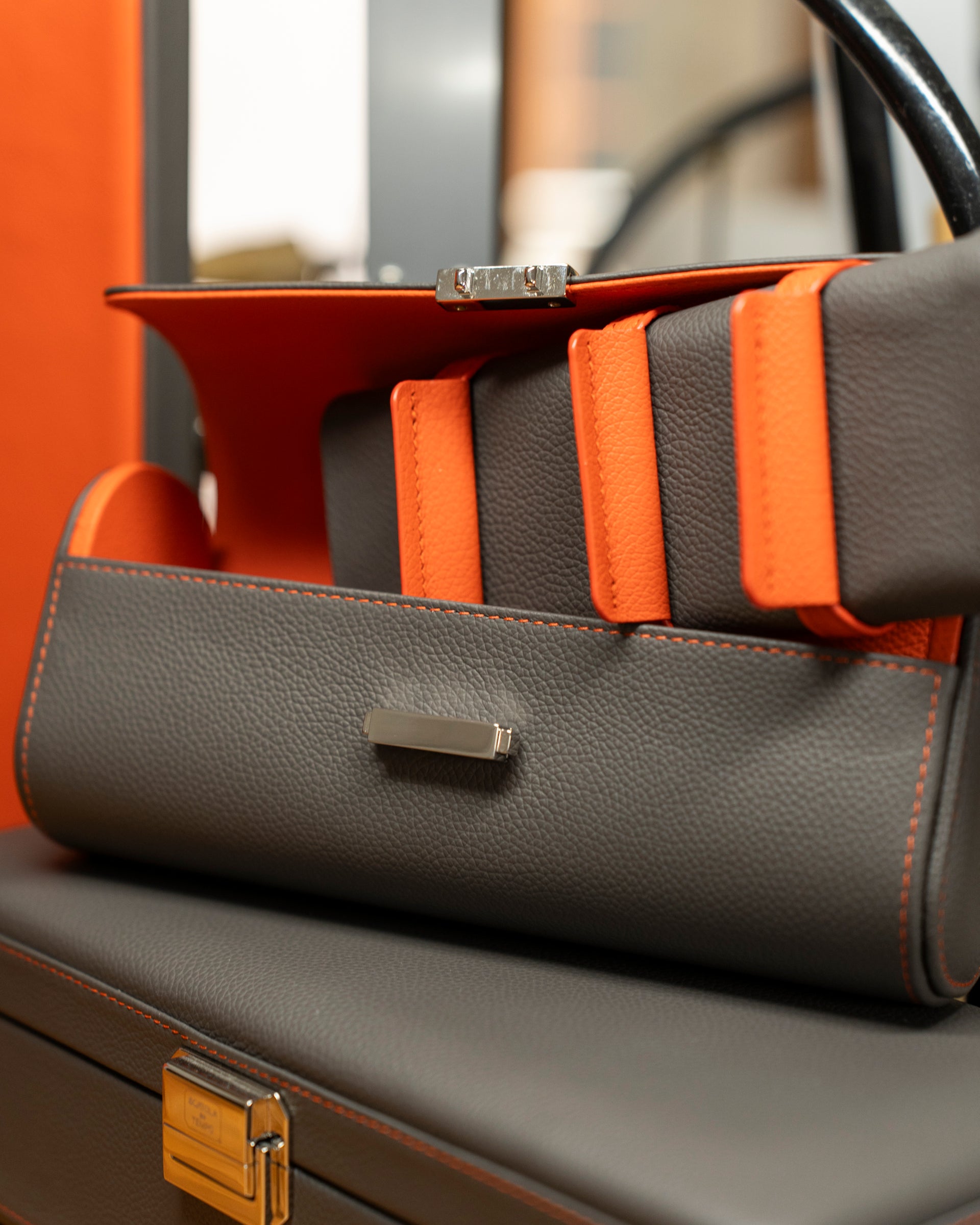 Astuccio per orologi in pelle grigio ardesia/arancione