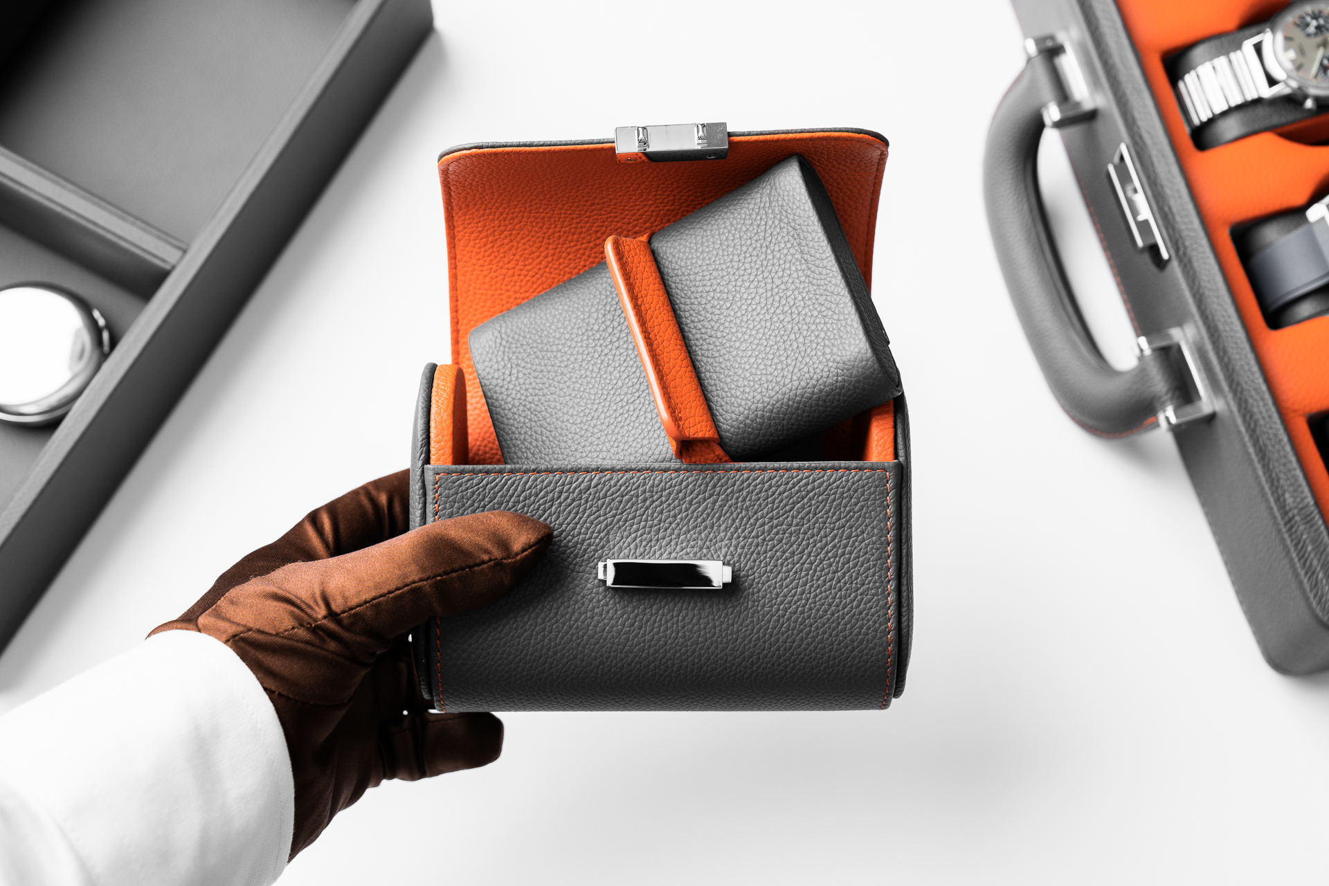 Le nostre scatole per orologi custodiscono i tuoi orologi e gioielli con la massima eleganza, grazie al sofisticato connubio tra pelle e seta.Le nostre scatole per orologi custodiscono i tuoi orologi e gioielli con la massima eleganza, grazie al sofisticato connubio tra pelle e seta.