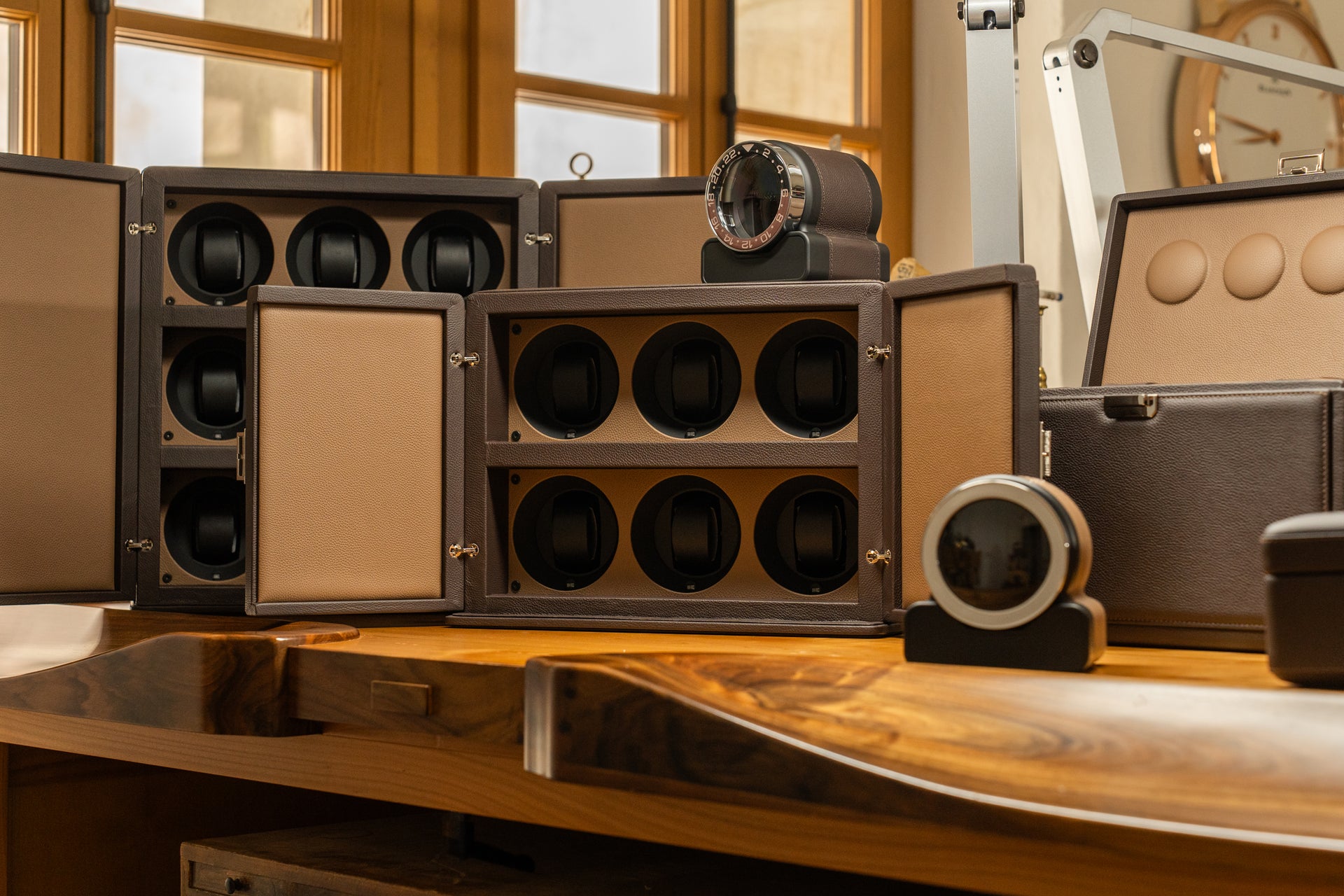 Grazie alla perfetta combinazione di maestria artigianale italiana e precisione svizzera, i nostri caricatori per orologi garantiscono una precisione e una qualità eccezionali. I nostri caricatori automatici di orologi combinano l’antica tradizione italiana nella lavorazione della pelle con la precisione svizzera nell’alta orologeria. Dotati di un meccanismo “Swiss Made“, sono accessori essenziali per i collezionisti di orologi esigenti. Combinando eleganza e precisione, i nostri caricatori per orologi assicurano il funzionamento regolare dei tuoi segnatempo, custodendoli in modo elegante e raffinato. Dai ai tuoi orologi la cura che meritano con Scatola del Tempo.