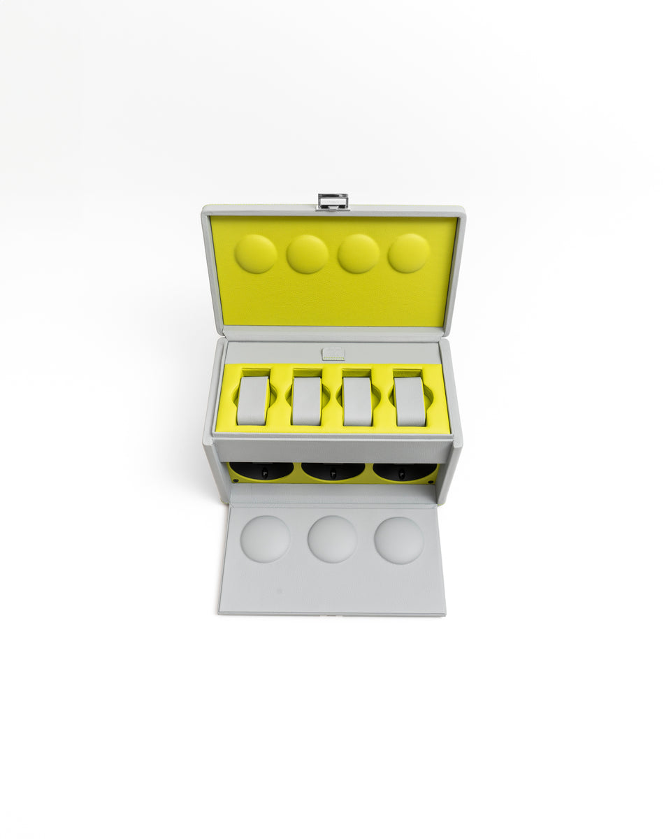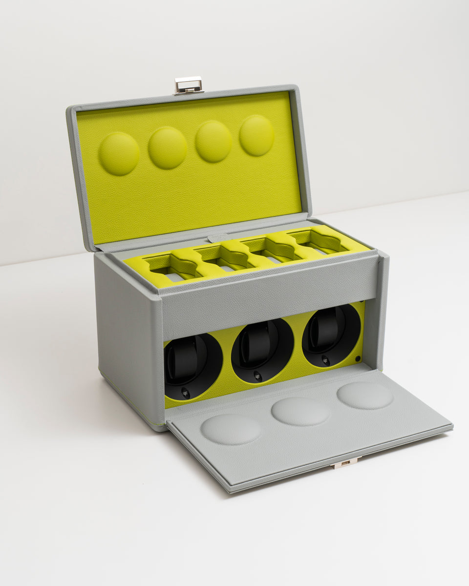 The 7RT watch case is a true sanctuary where each watch is protected: 3 automatic watch winders and a storage space for 4 watches. Designed to meet the high standards of collectors, the 7RT automatic watch winder combines cutting-edge technology with artisanal refinement. Equipped with 3 programmable winders and additional space for 4 wristwatches, this watch box ensures exceptional care for your timepieces. Programmable via Bluetooth, the 7RT allows you to set the number of daily turns and the direction of rotation to meet the specific needs of each of your watches.