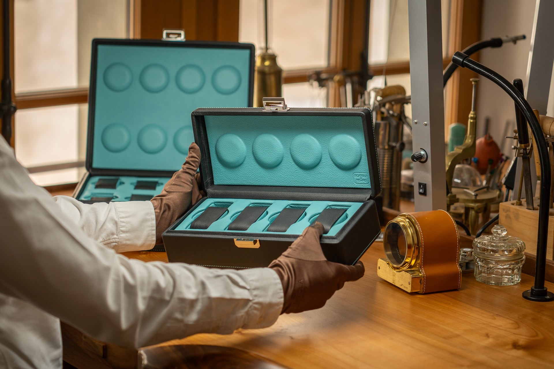 Designed for discerning collectors, the Valigetta watch case allows for the secure transport of up to 32 timepieces with the utmost elegance.