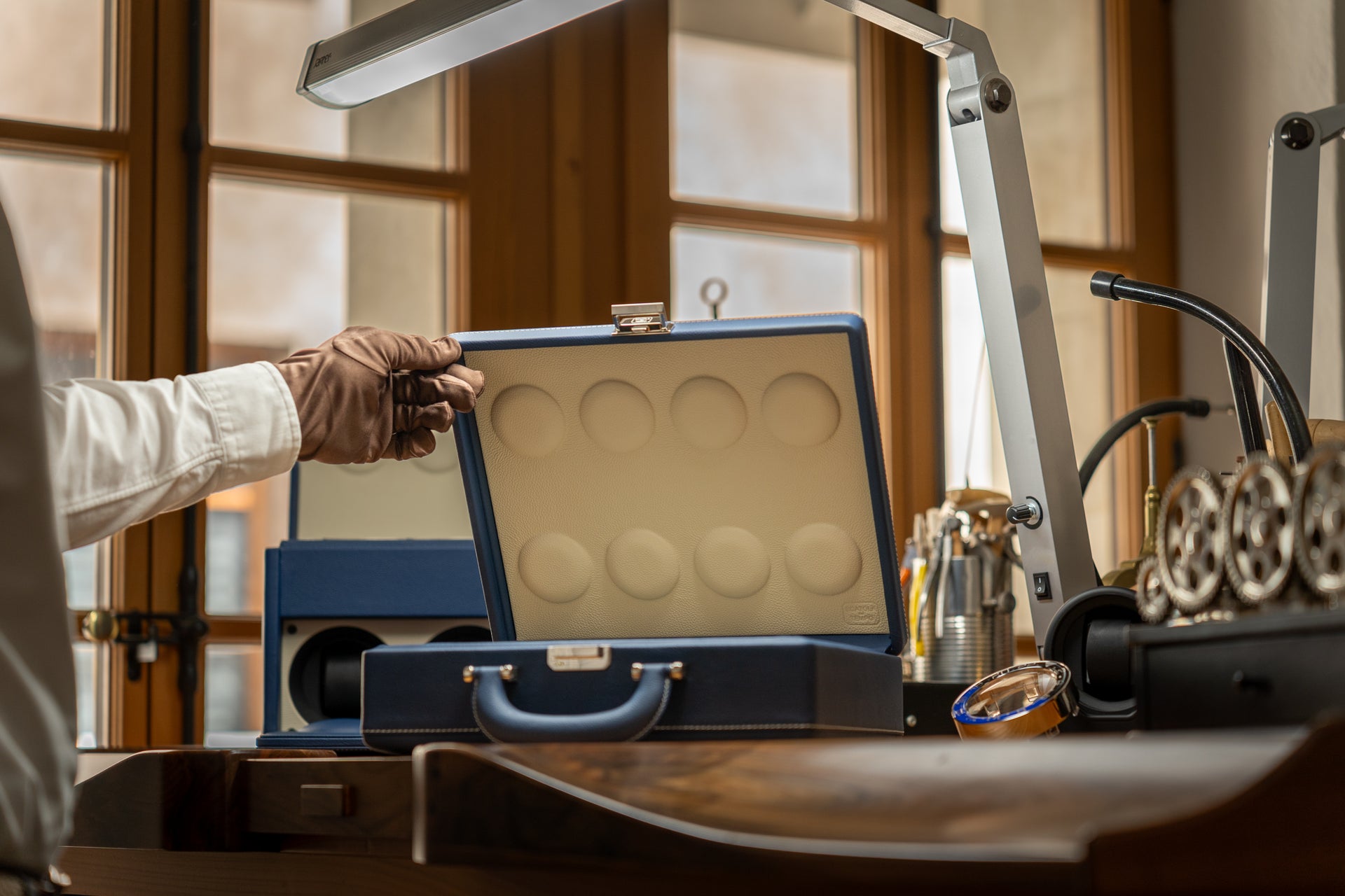 Providing secure and elegant protection for your watches, the Toledo leather we use reflects our commitment to excellence. Clad in Toledo calfskin leather, our watch cases combine strength, elegance, and a soft touch. Derived from natural tanning, our signature leather is a promise of durability and timelessness. A true showcase of craftsmanship, eacch of our leather watch cases ensures the protection of your precious timepieces.