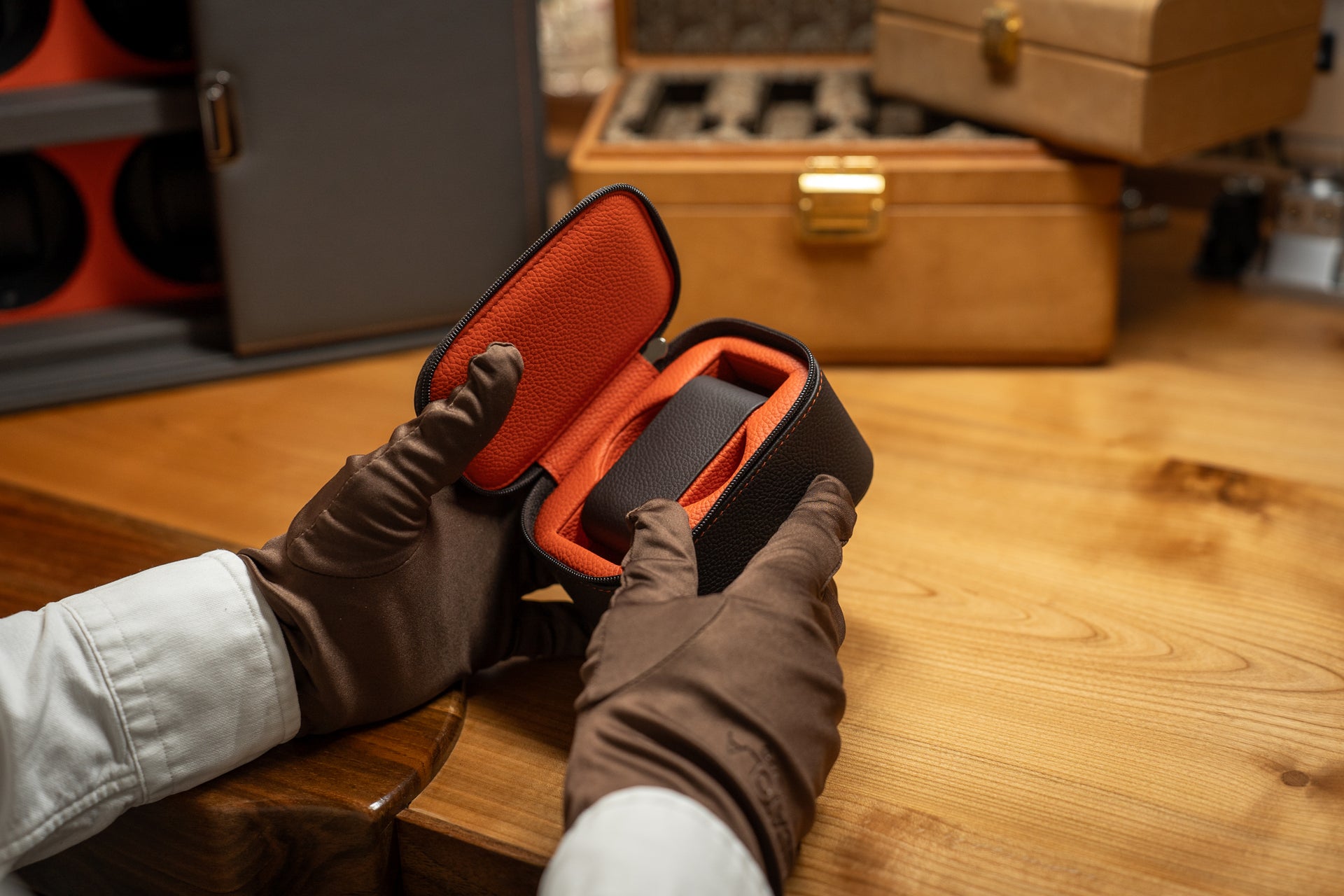 Combining technological innovation with artisanal craftsmanship, our leather watch cases ensure the preservation of your watches while offering elegance worthy of the finest timepieces.